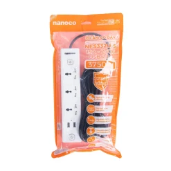 Ổ cắm có dây 5 mét 15A, 3 ổ cắm đa năng + 2 ổ cắm USB + 2 công tắc Nanoco NES332U-5