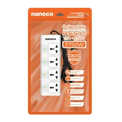Ổ cắm có dây 5 mét 15A, 4 ổ cắm đa năng + 4 công tắc Nanoco NES43415-5